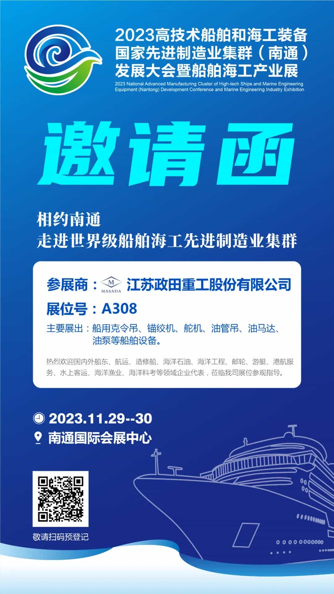 2023年11月29-30日,南通國際會展中心A308展位,政田重工與全球船舶人相約南通,走進世界級船舶海工先進制造業集群!