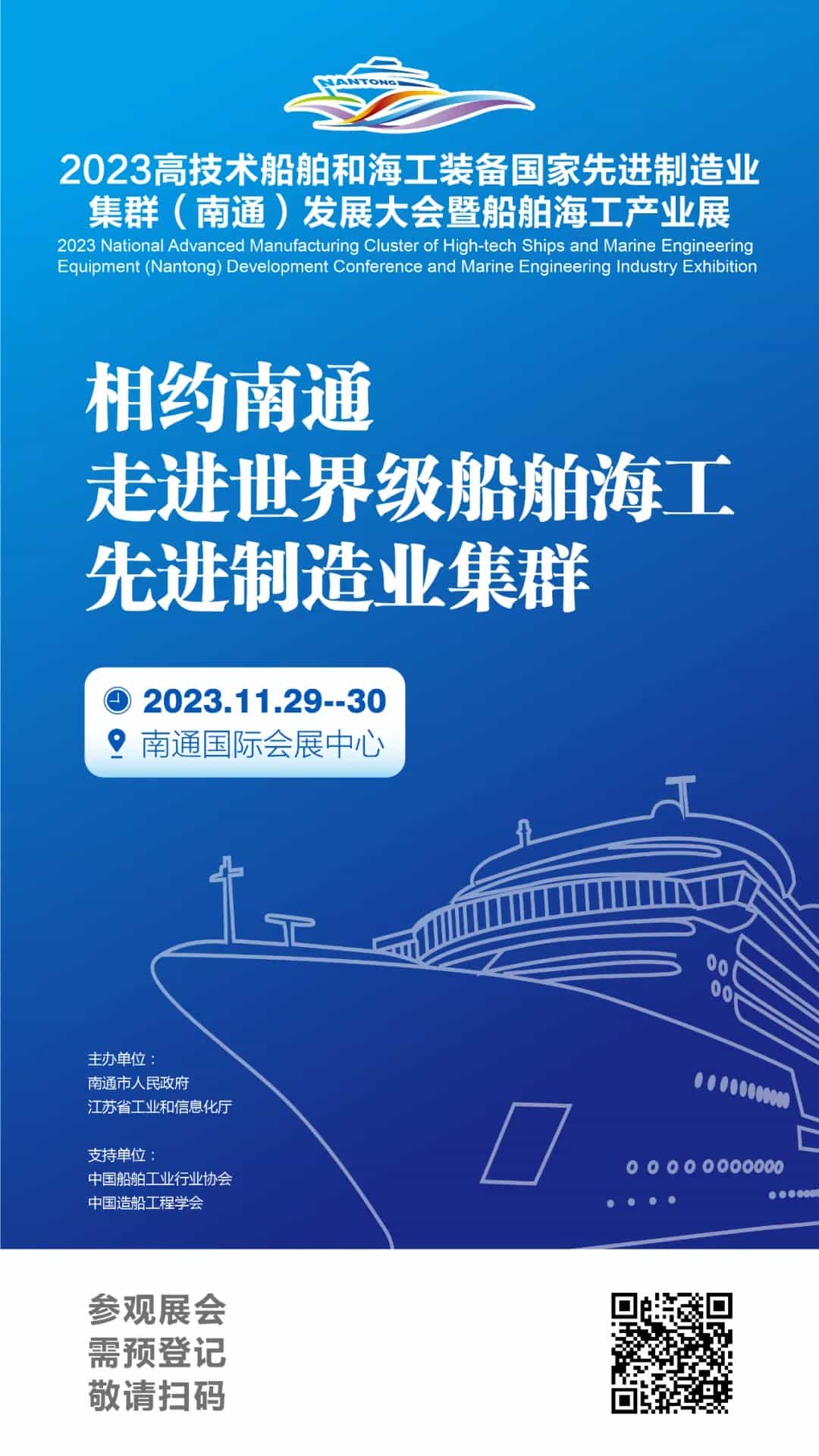 由南通市人民政府、江蘇省工業和信息化廳主辦的“2023高技術船舶和海工裝備國家先進制造業集群(南通)發展大會暨船舶海工產業展”,將于11月29日-30日在南通國際會展中心隆重召開。