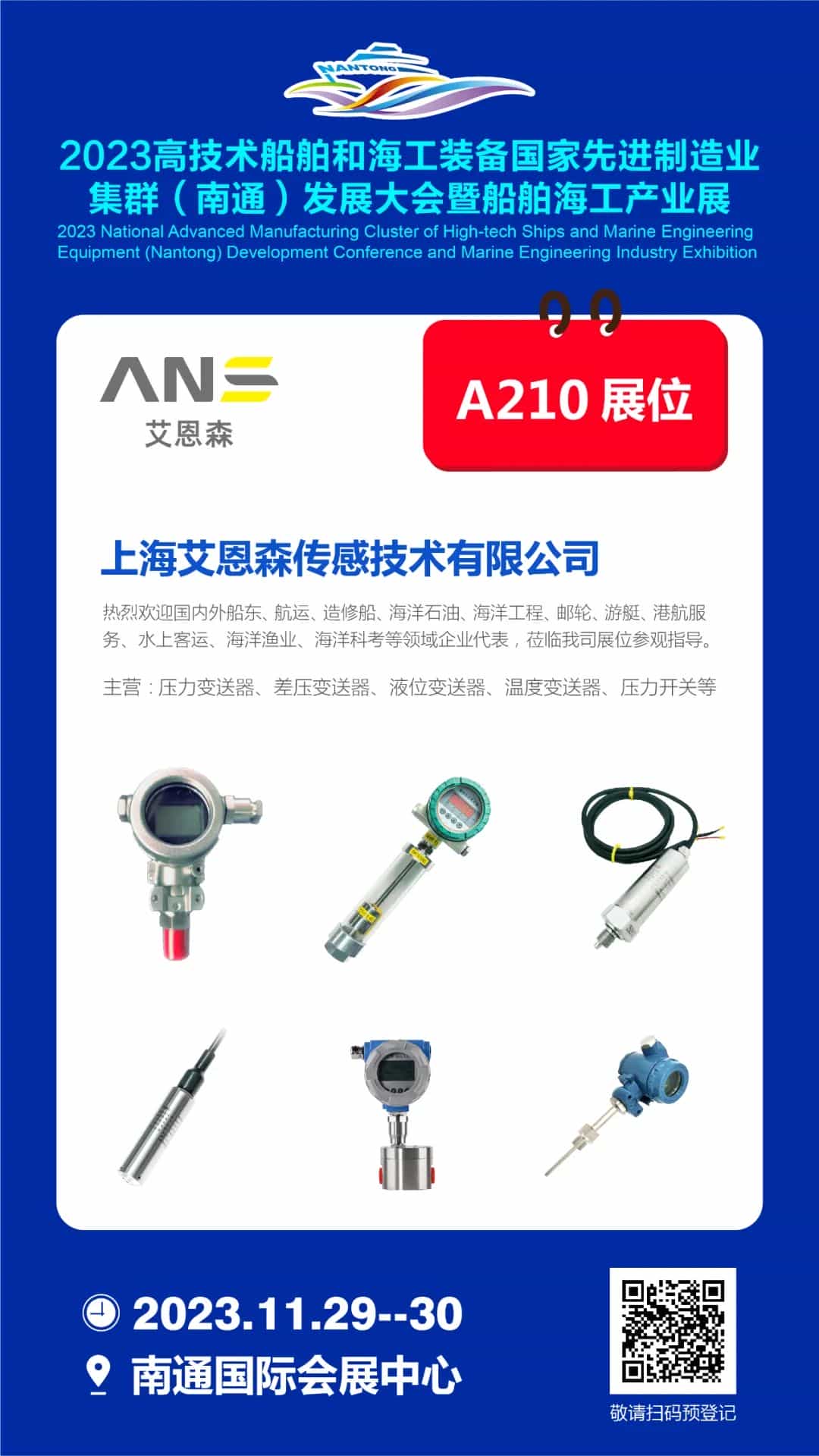 2023年11月29-30日,南通國際會展中心A210展位,上海艾恩森與全球船舶人相約南通,走進世界級船舶海工先進制造業集群!