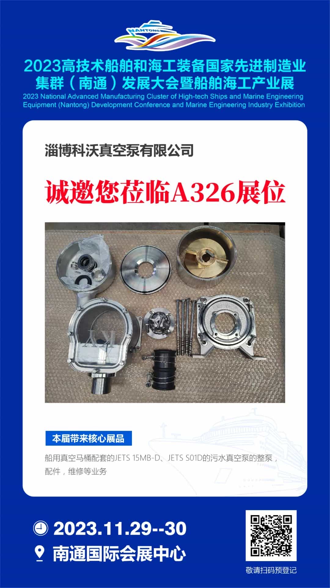 2023年11月29-30日,南通國際會展中心A326展位,科沃真空泵與全球船舶人相約南通,走進世界級船舶海工先進制造業集群!