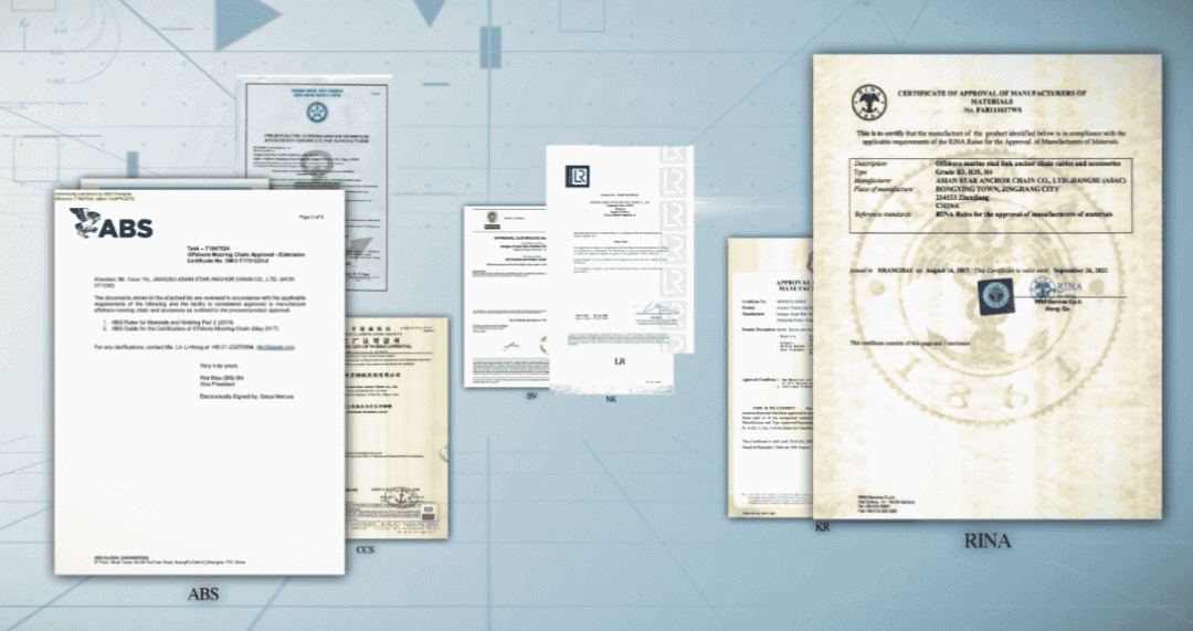 公司作為主要編制單位,參與編制超高強度系泊鏈國際標準ISO20438、船舶與海洋技術-有檔錨鏈國際標準ISO1704,處于世界領先地位,能接受各種非標產品定制,滿足不同客戶的需求。