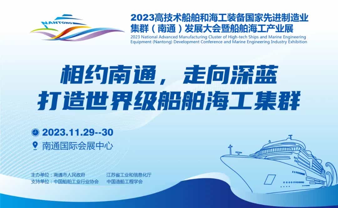 由南通市人民政府、江蘇省工業和信息化廳主辦的“2023高技術船舶和海工裝備國家先進制造業集群(南通)發展大會暨船舶海工產業展”將于11月29日-30日在南通國際會展中心舉行。