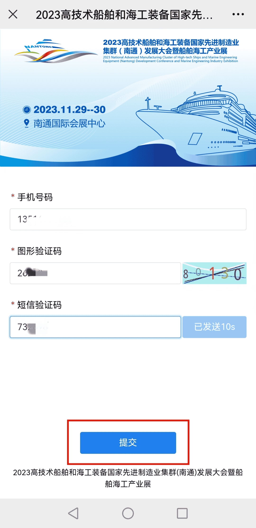 1、進入注冊頁面,按提示輸入手機號碼,收到短信驗證碼后點擊“提交”。