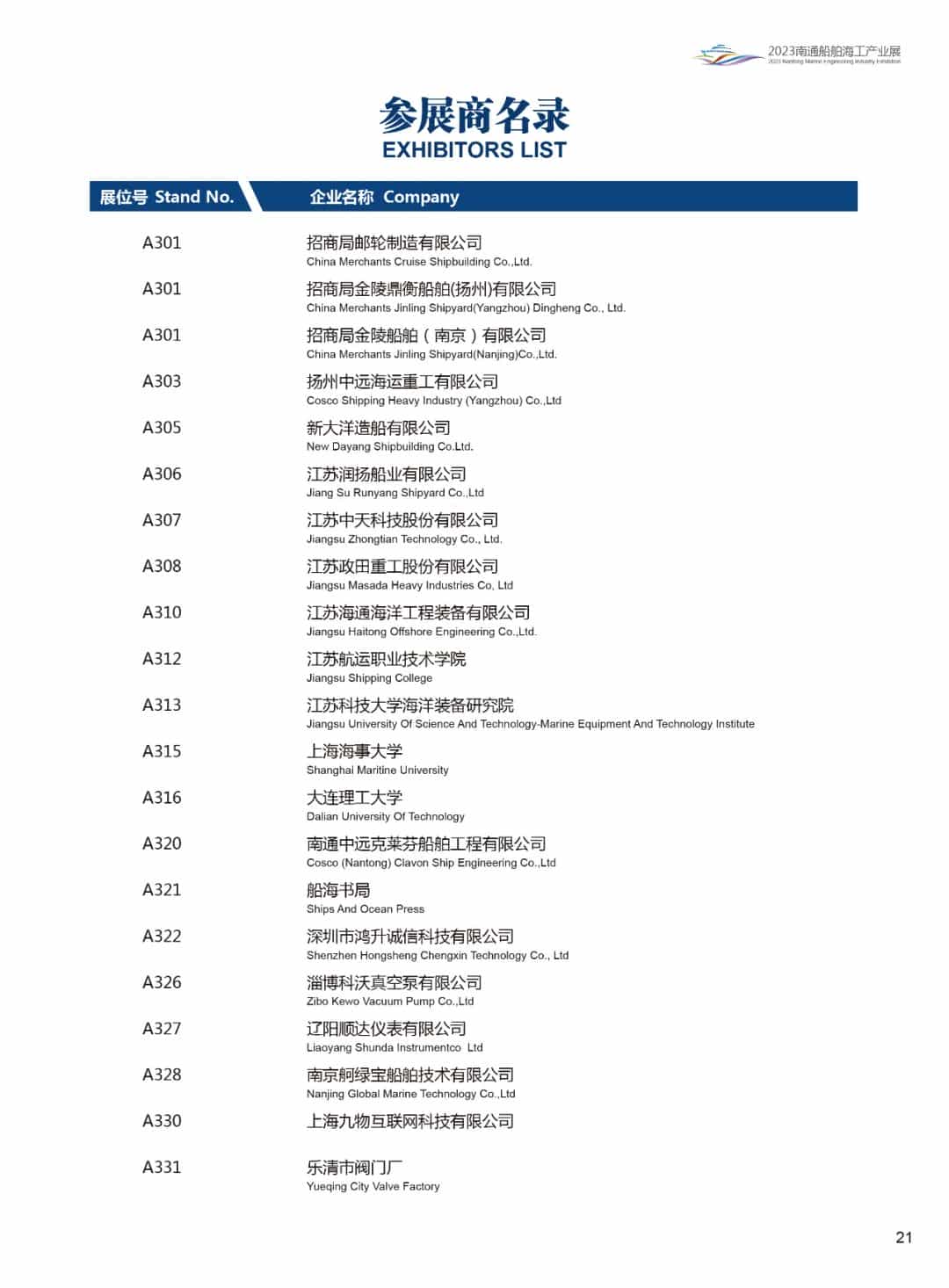 議程--創新產品和技術交流會丨2023南通船舶海工產業展參展商名錄更新