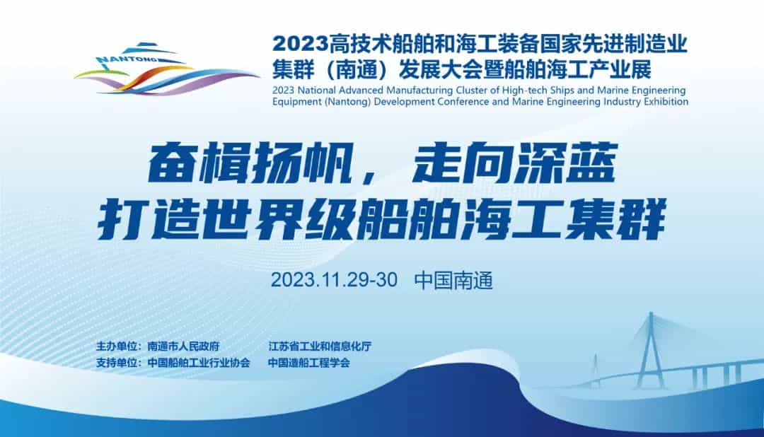 11月29日-30日,由南通市人民政府、江蘇省工業和信息化廳主辦的“2023高技術船舶和海工裝備國家先進制造業集群(南通)發展大會暨船舶海工產業展”,將在南通國際會展中心舉辦。
