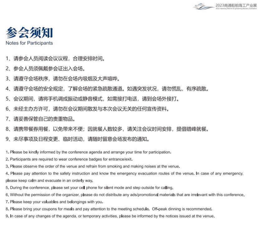 會務(wù)手冊丨2023南通船舶海工產(chǎn)業(yè)展