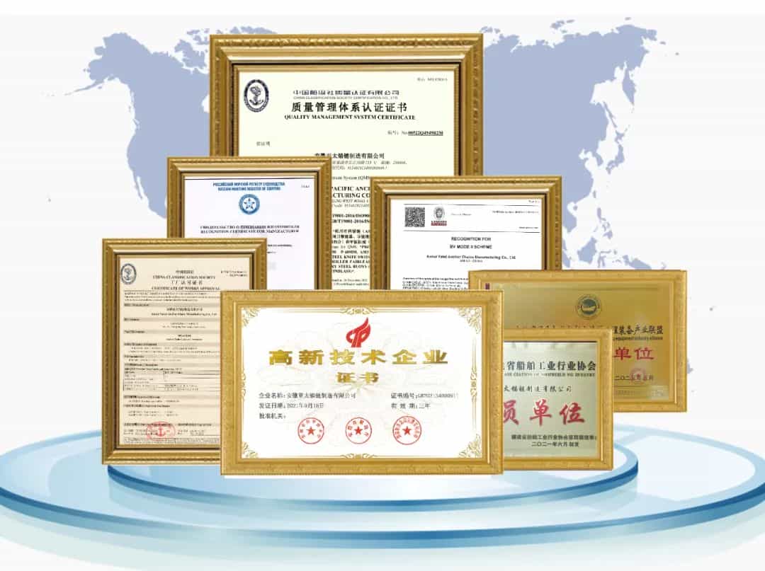 亞太錨鏈生產的產品,嚴格按照國家標準和船級社焊接規范要求生產,并先后通過了GB/T19001-2016/IS09001: 2015質量管理體系的認證和中國(CCS)、俄羅斯(RS)、法國(BV)、美國(ABS)、印度(IRS)、德國(GL)、挪威(DNV)、日本(NK)、韓國(KR)、德國(GL)、意大利(RINA)等多國船級社的認證,以及地方船檢(ZC)、漁檢(ZY)認證。
