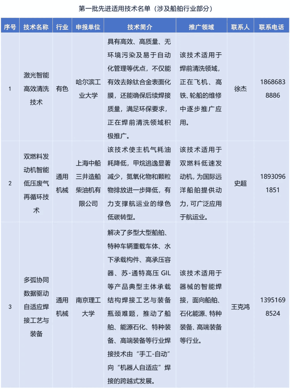 多項可在船舶行業推廣,工信部發布第一批先進適用技術名單
